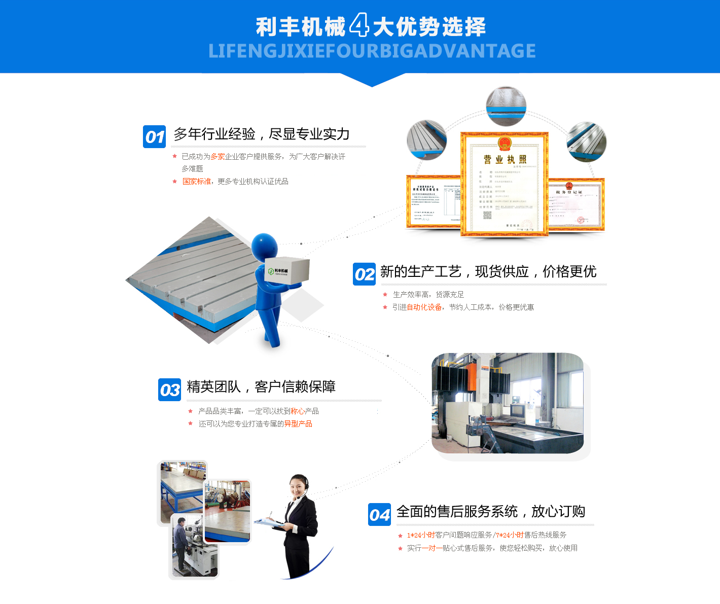 泊頭市利豐機械制造有限公司是生產工具,量具的單位,地處河北省泊頭市。我公司生產的鑄鐵平板、鑄鐵劃線平臺、機床鑄件、大理石量具等量具,具有設計合理、結構穩定、使用壽命長等特點,廣泛用于機械加工、工具車間、裝配車間、機(檢)修車間、計量室及精密加工的檢驗、測量和研究。熱忱歡迎_兄弟廠家朋友前來我公司參觀考察合作,在互惠互利的基礎上,攜手共進,共圖發展。